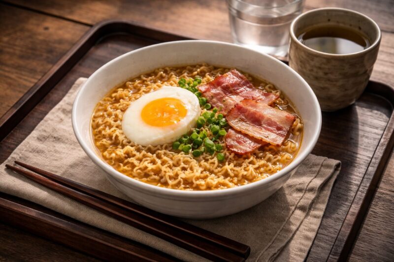 しかも卵とベーコンのトッピング付き。
