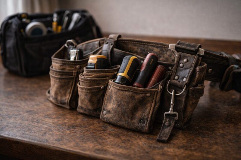 私は修行時代、腰道具だけで現場に入る流れだったので、「あれも必要かも」「これもあった方がいいかも」と、自然と工具が増えていきました。結果、今の腰道具はそれなりに重たいです。